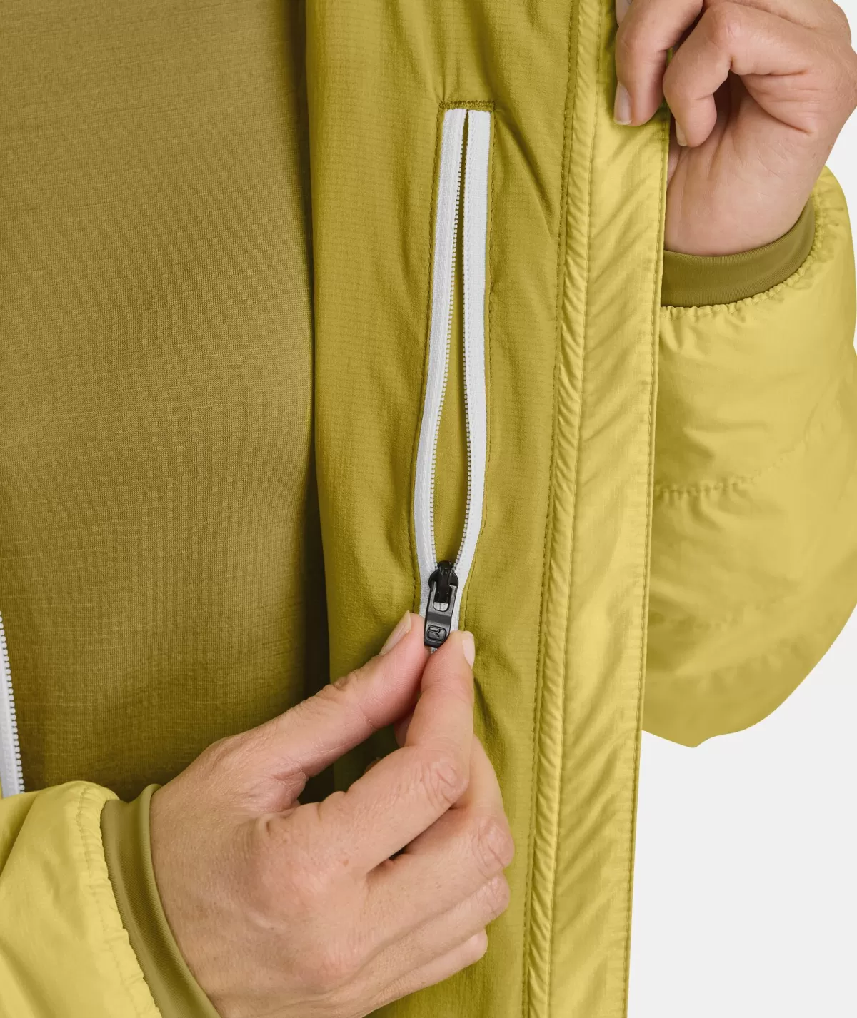 Die leichte, warme Isolationsjacke ist dank PERTEX QUANTUM Material wind- und wasserabweisend und dabei besonders abriebfest. Für angenehme Isolation sorgt das Innenfutter aus Swisswool, das mit 60 g/m2 und 90 g/m2 an unterschiedlichen Körperstellen für die richtige Temperatur sorgt.